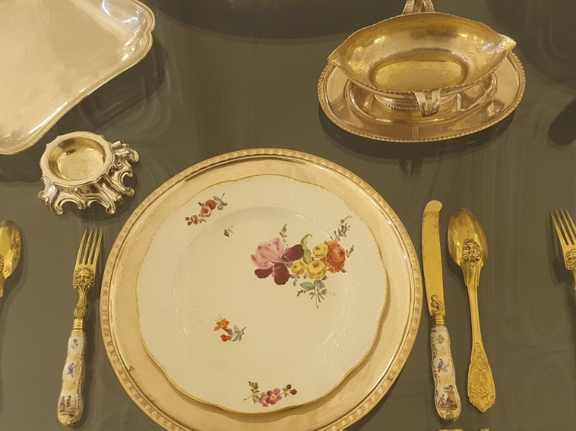 srebra, porcelana i szkło ze zbiorów Zamku Królewskiego na Wawelu", prezentowanej w dniach 2 listopada 2021 - 3 kwietnia 2022 roku, w Krakowie na terenie wawelskiego kompleksu zamkowego. Na wystawie tej zgromadzono ponad dwieście osiemnastowiecznych naczyń i utensyliów stołowych, wykonanych z porcelany, srebra oraz szkła. Komentarzem do zgromadzonych obiektów był fragment Opisu obyczajów za panowania Augusta III autorstwa Jędrzeja Kitowicza (1728–1804), opisujący zastawy stołowe. Sprawne oko mogło wypatrzyć m.in. pozłacaną srebrną chochlę z królewskimi inicjałami: A(ugustus)R(ex) oraz kryształowy puchar z herbem Rzeczypospolitej pod panowaniem Wettynów. (Adam Biliński) |